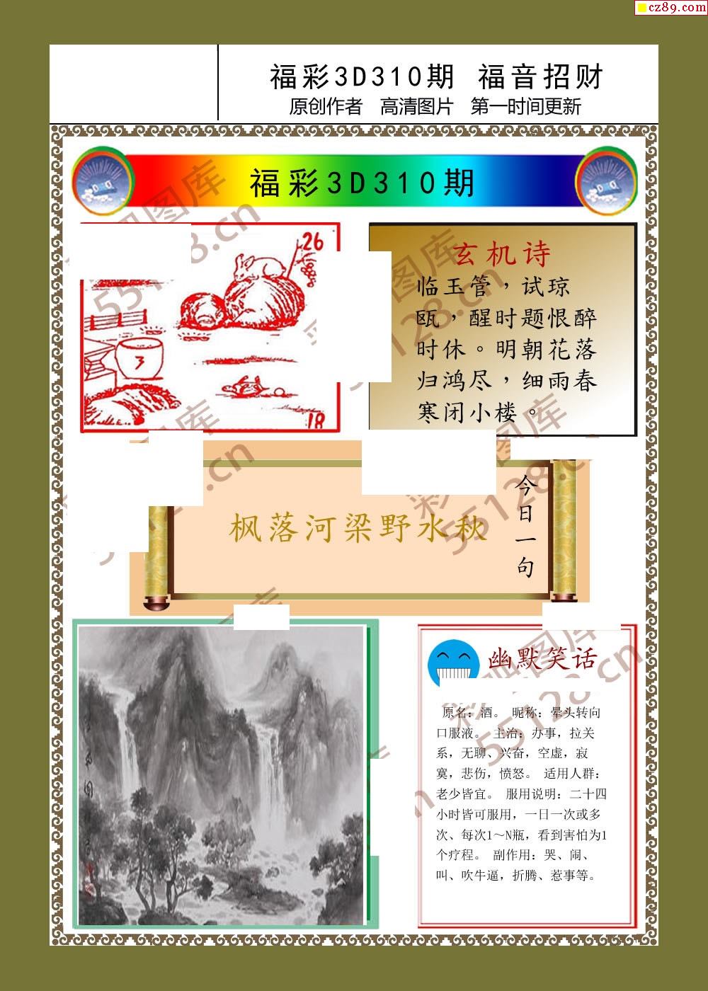 > 福音招财25年310期3d字画彩报